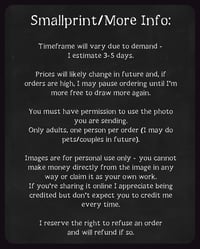 - Any information about things you do/don't want included (I can't guarantee I'll add everything).